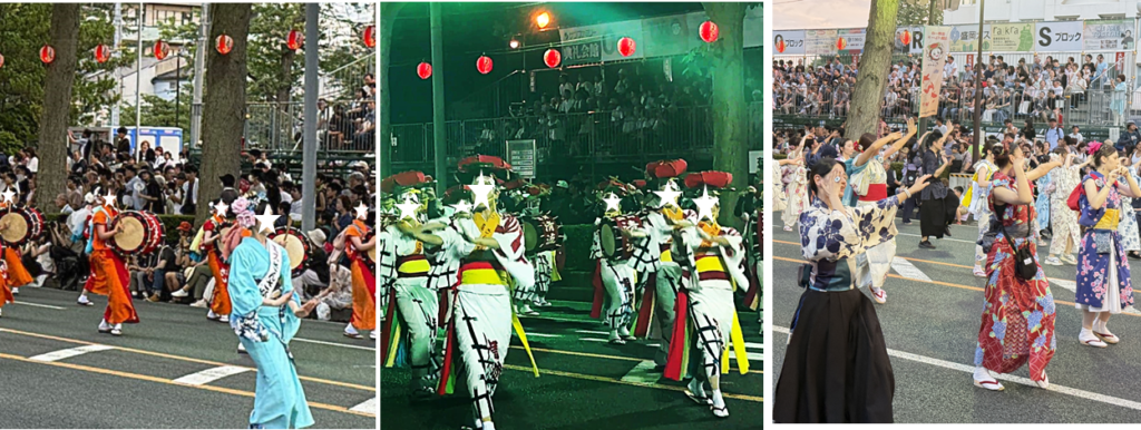 太鼓が一斉に打ち鳴らされる様子は力強く迫力満点で、たくさんの踊り手たちが舞い踊る姿はとても華やかで見ごたえのあるパレードでした。